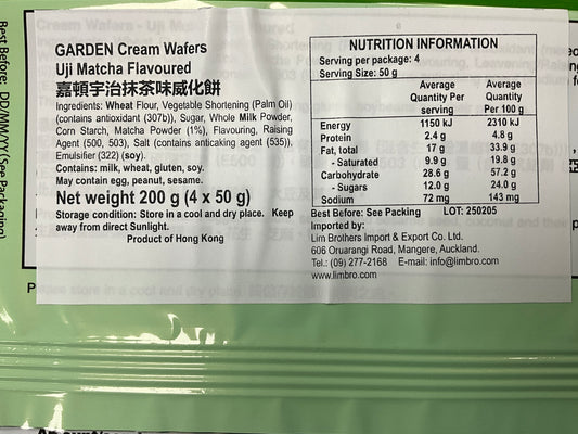 Garden Uji matcha wafers 200g嘉顿忌廉威化宇治味
