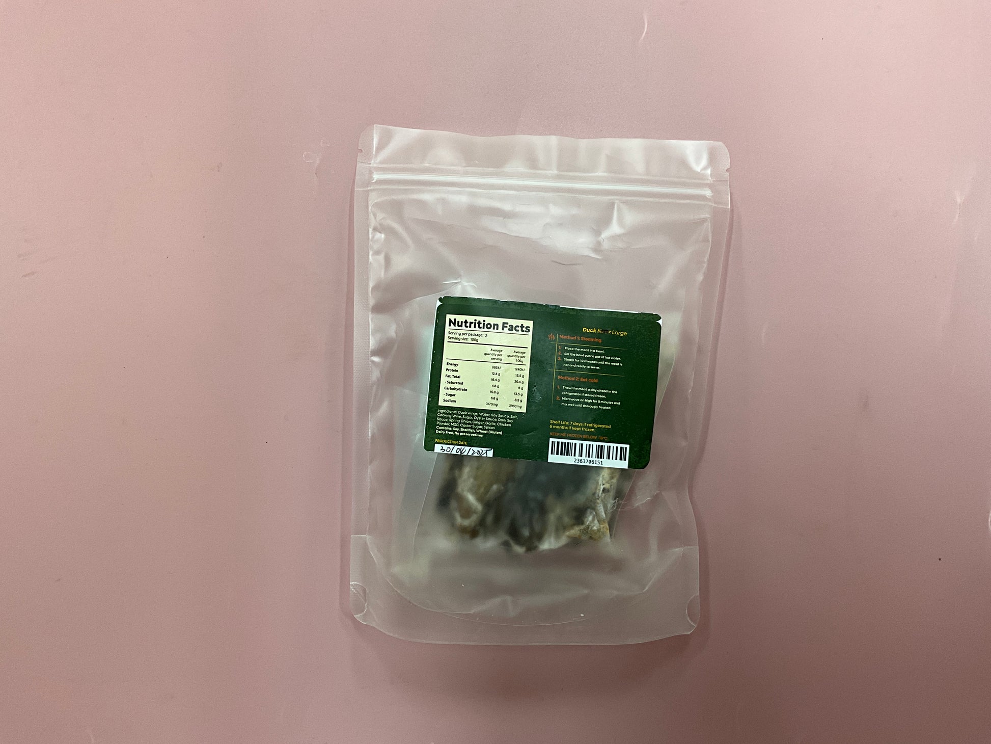 Ingredients: Duck wings, Water, Soy Sauce, Salt, Cooking Wine, Sugar, Oyster Sauce, Dark Soy Sauce, Spring Onion, Ginger, Garlic, Chicken Powder, MSG, Caster Sugar, Star Anise, Red Pepper Corn, Cinnamon Stick, Bay Leaves